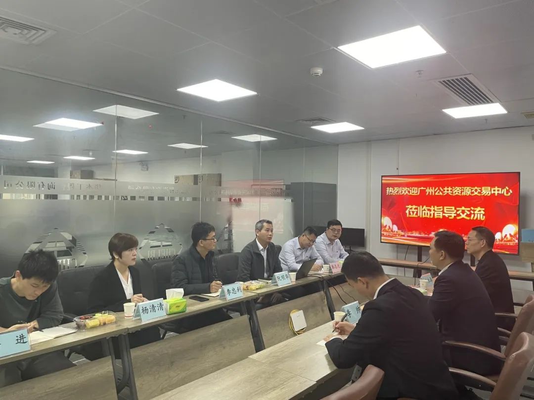 2025年3月5日,廣州公共資源交易中心業務拓展部許春輝部長一行到華杰公司廣東分公司開展交流,相關負責人阮明華等6人參加了本次交流會議。
